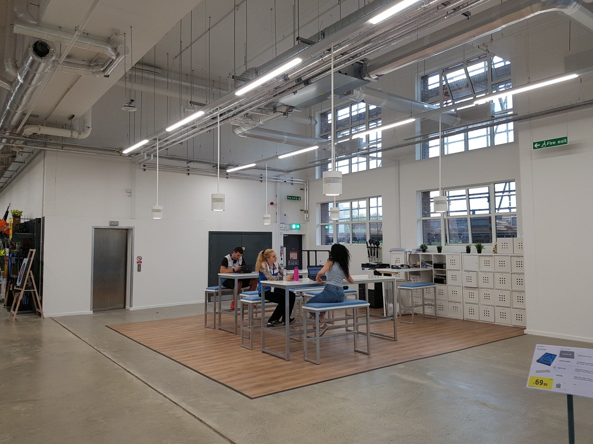 🡆 Applications require lighting include shop floor, offices, communal areas, store rooms, WC and changing areas.