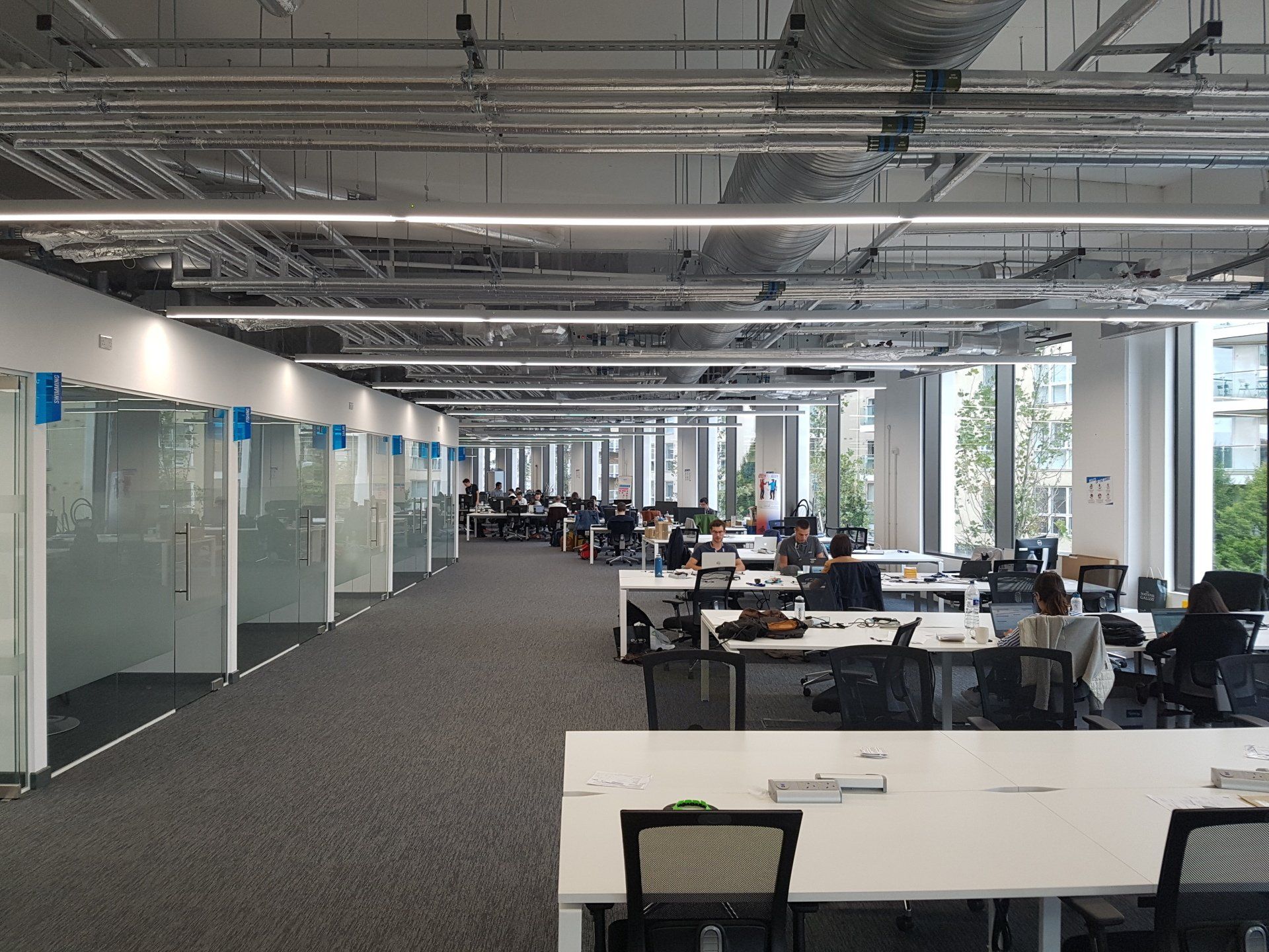 🡆 Chimera suspended at 2.3m above floor luminaire to provide 500 lux maintained average at desk level in the main office and communal areas.