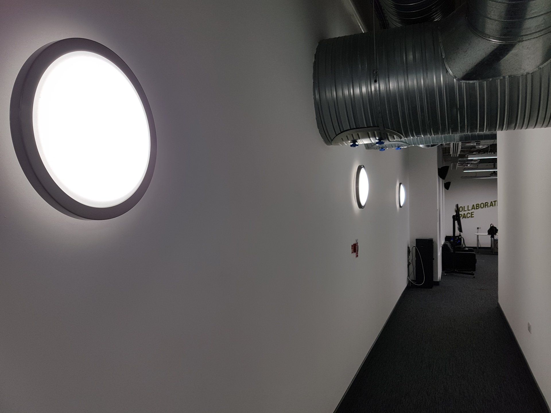 🡆 Asterius luminaire with 110° beam was utilised throughout the shop floor areas, DALI dimmable to allow for complete client control and boosting energy savings.