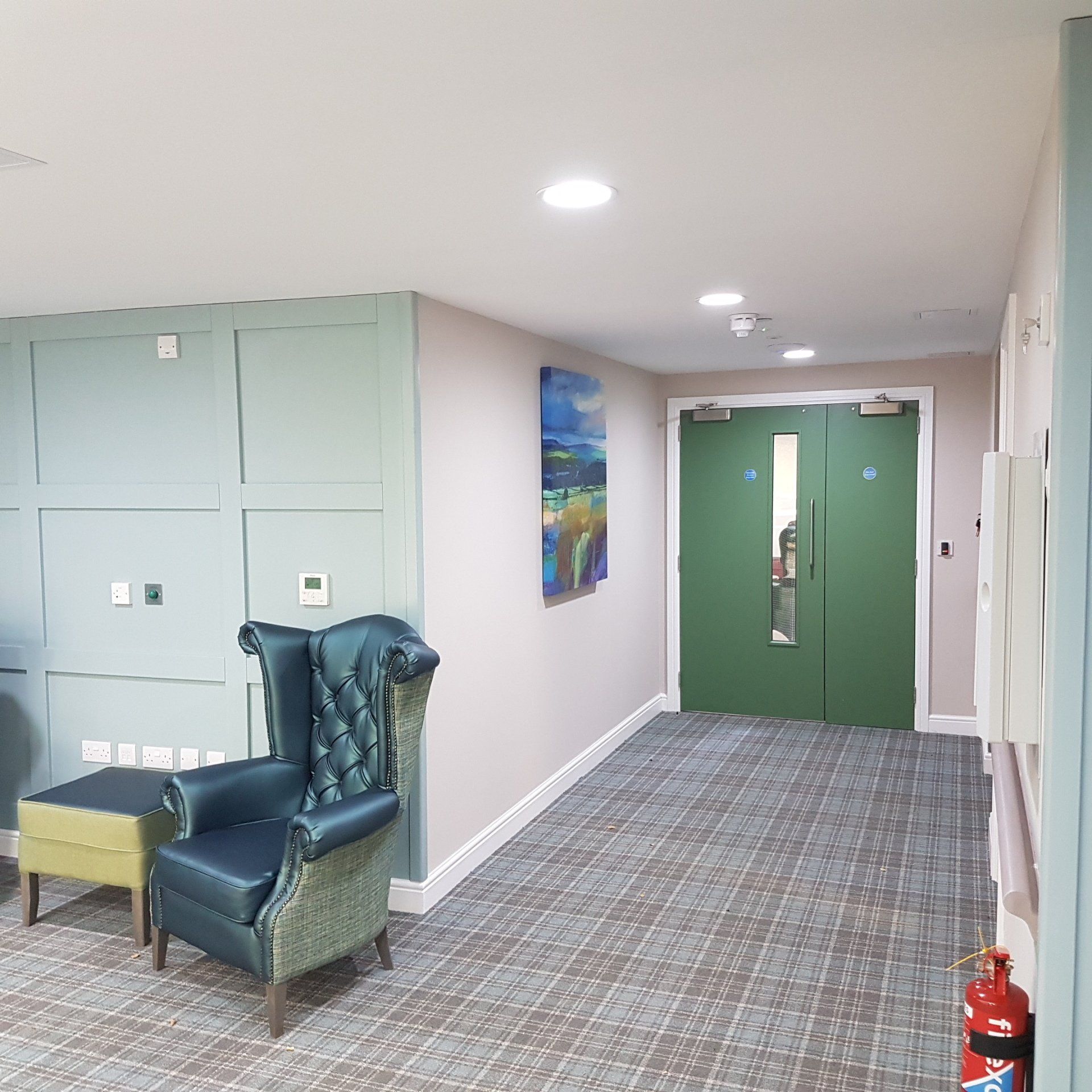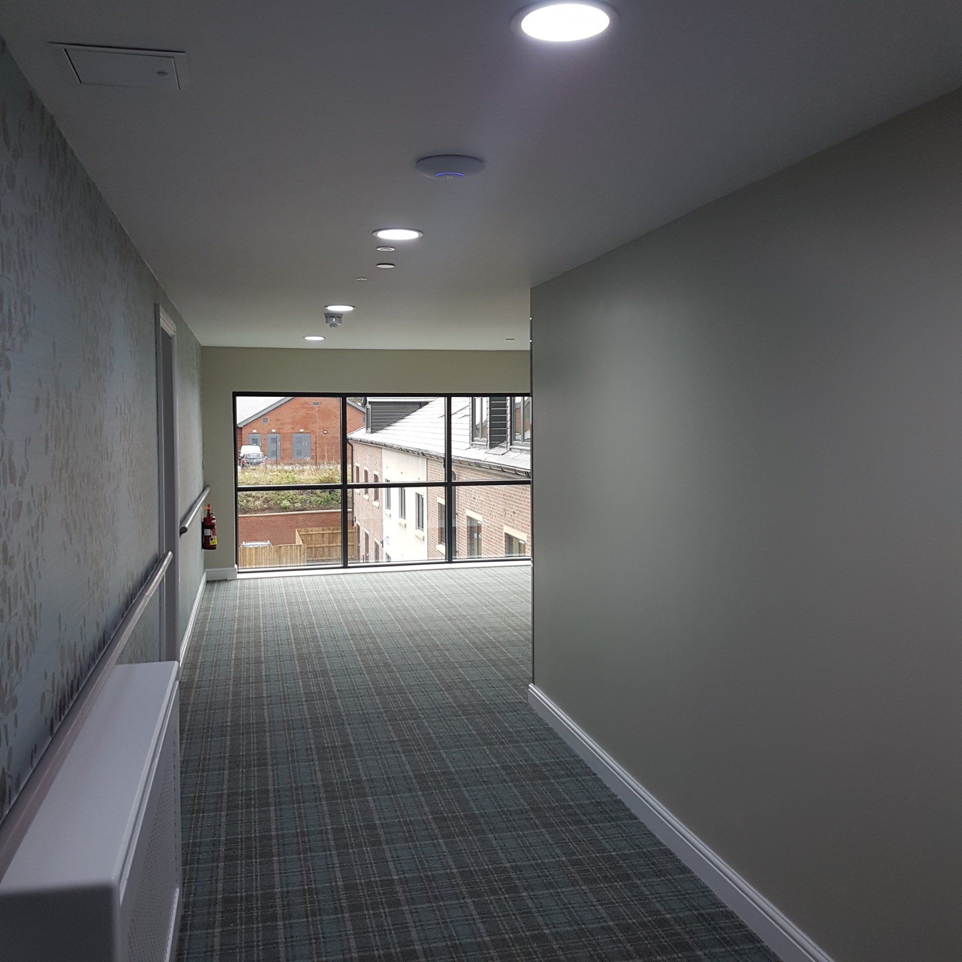 The technology of the circadian solution implements an overide function which allows staff to turn on full lighting intensity in each of the rooms if required. This can then be switched back to full circadian when the care home requires it. In addition PIR sensors can also be integrated into the system to ensure energy usage is kept to a minimum, in the case of the Heanor site these were implemented into nearly all of the corridor and common areas.
